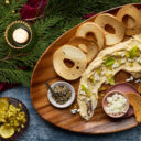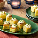 Avec une râpe, placer le jaune d’œuf au sommet de chaque bouchée. Terminer avec de la fleur de sel ou du sel Maldon et du poivre fraîchement moulu.